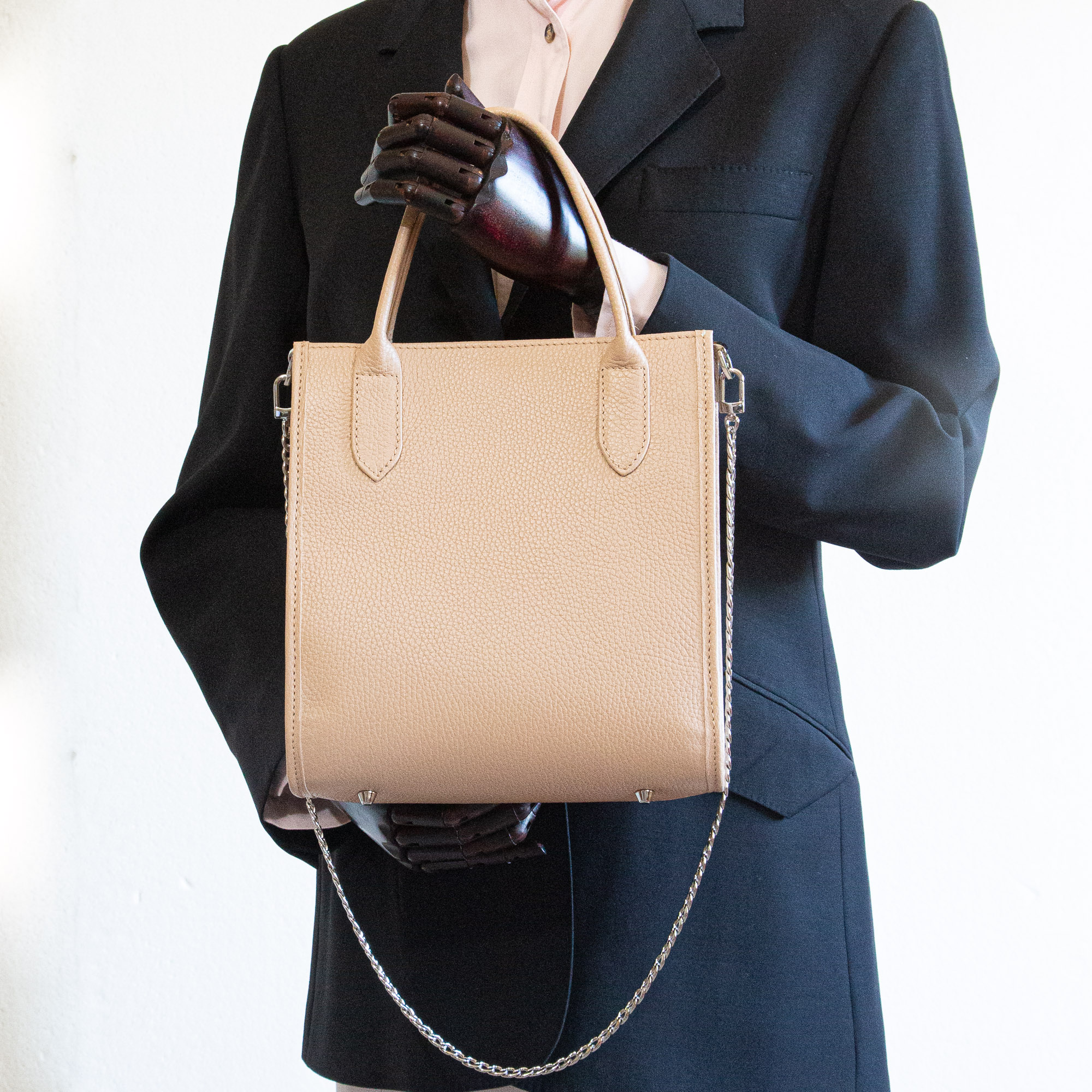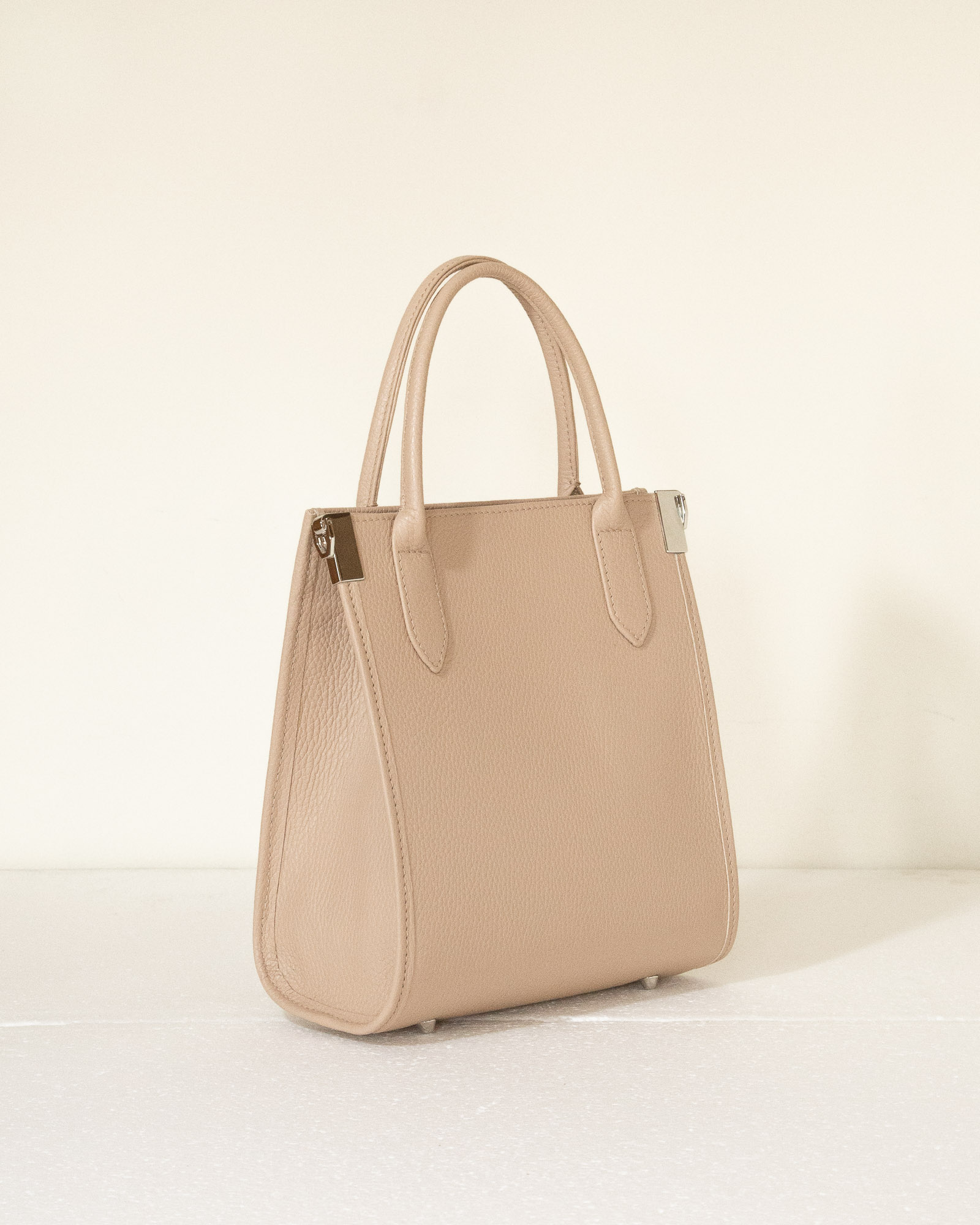 Chic mini structured tote bag with magnetic closure, the structure adds elegance to the convenience of a tote.