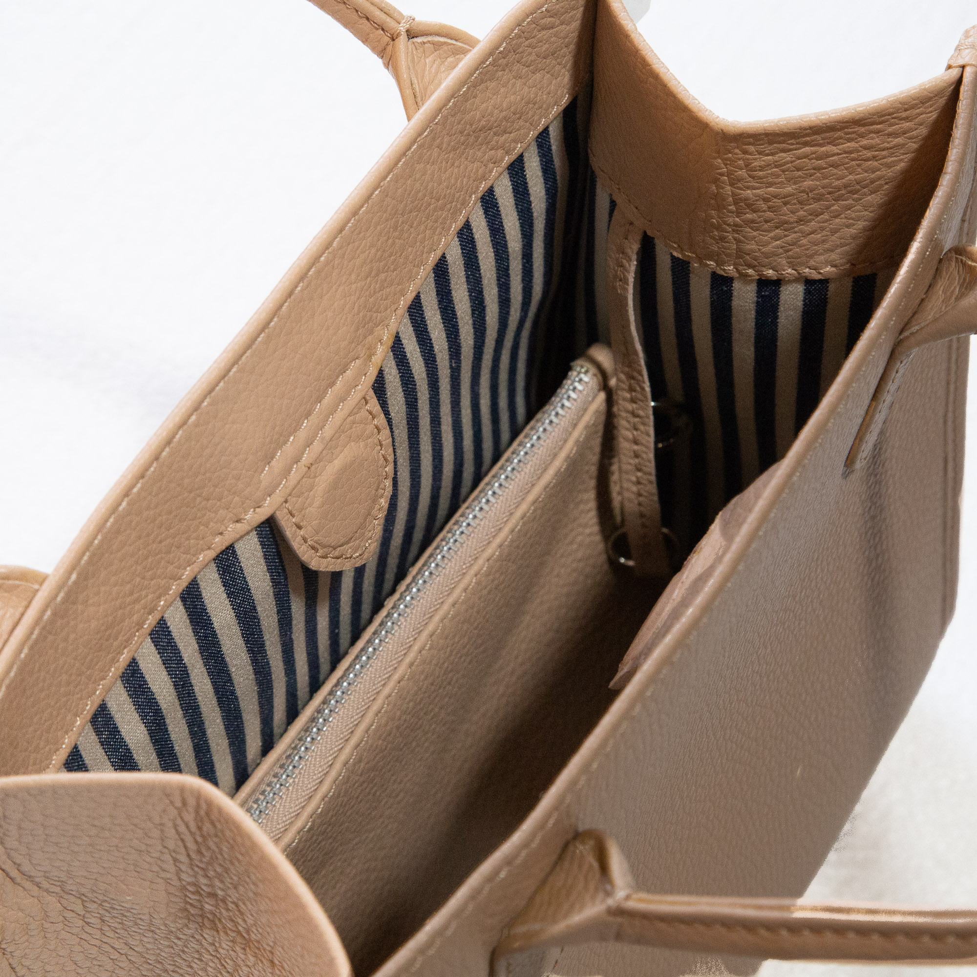 Crafted in top grain Italian leather, this small tote bag has a separate internal zipped pouch. Firm cotton lining