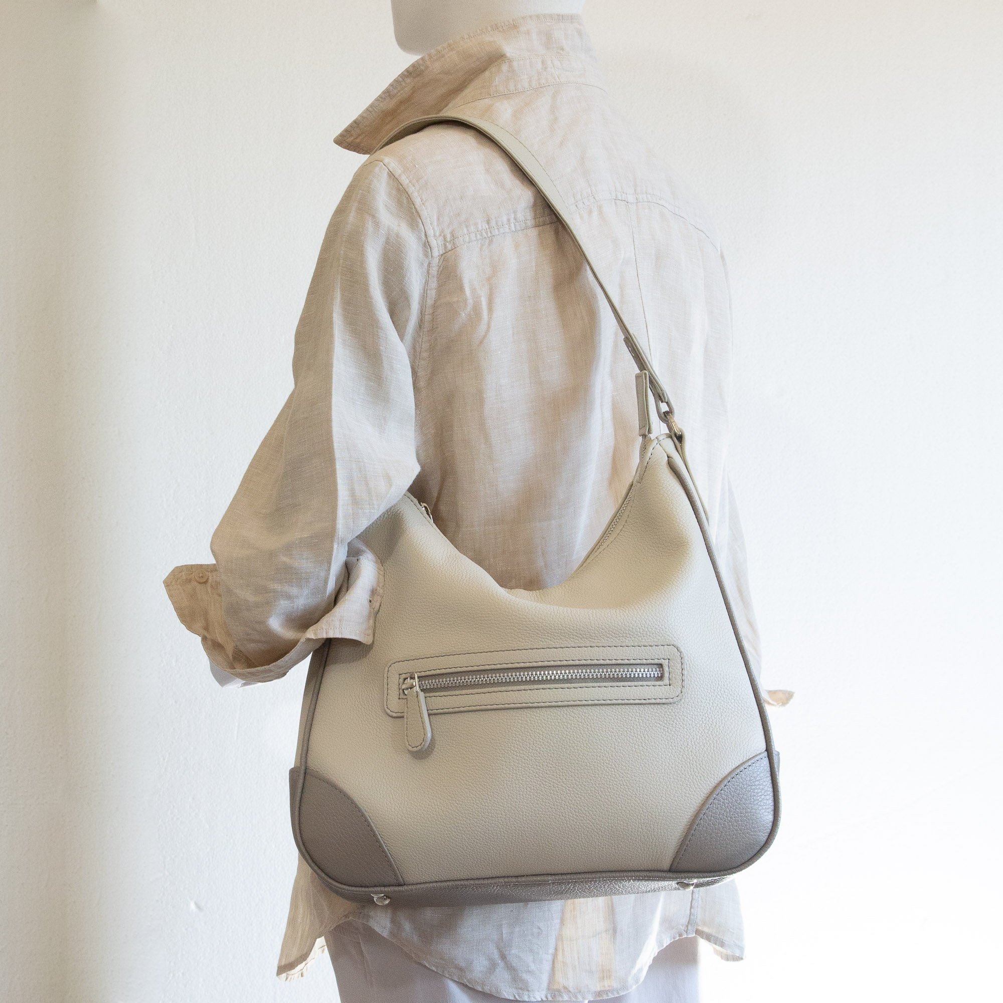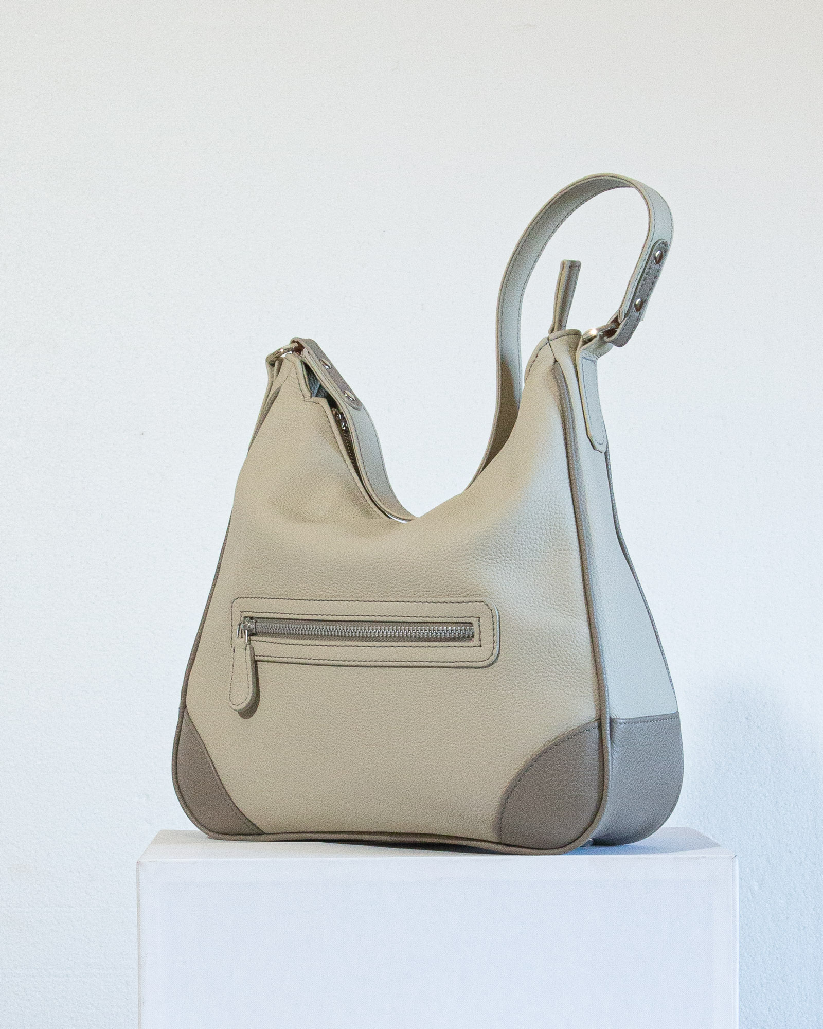 A large soft hobo style shoulder bag with external zipped pocket. Casual and timeless it will maintain its appeal